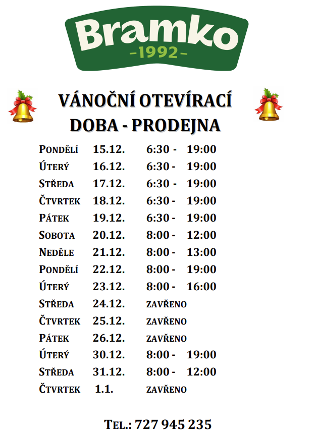 Vánoční otevírací doba podnikové prodejny v Semicích zde